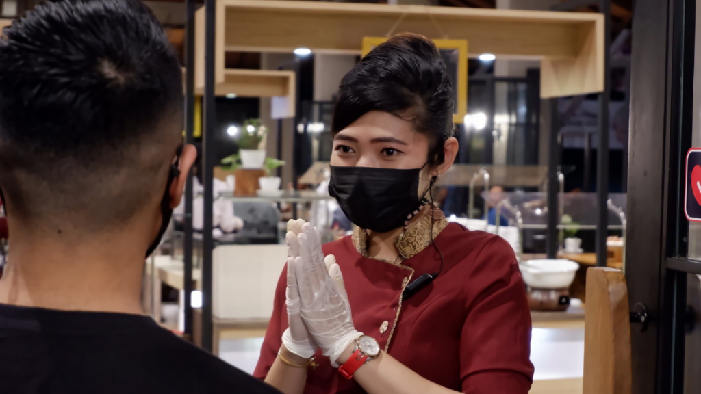 Dari pintu masuk, kamu bisa menemukan pencatatan data diri dan pengecekan suhu tubuh serta kamu diwajibkan untuk menggunakan masker selama di Hotel. Staff kami juga menggunakan pelindung diri seperti masker, handgloves dan meminimalisir kontak dengan tamu. Tak hanya itu, kami juga selalu mengganti linen kamar dan menyemprot dengan disinfektan setelah tamu cek out.