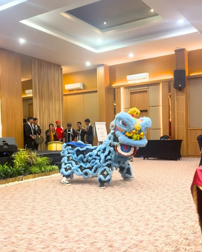 Live music mengawali rangkaian entertainment malam itu, menghangatkan suasana dengan lagu-lagu yang catchy. Puncak excitement datang saat atraksi barongsai dan liong memasuki ballroom! Warna-warni costume dan gerakan yang dinamis membuat semua mata tertuju pada pertunjukan tradisional Imlek ini. Anak-anak especially terlihat antusias, beberapa bahkan berani mendekat untuk menyentuh barongsai yang dipercaya membawa keberuntungan.